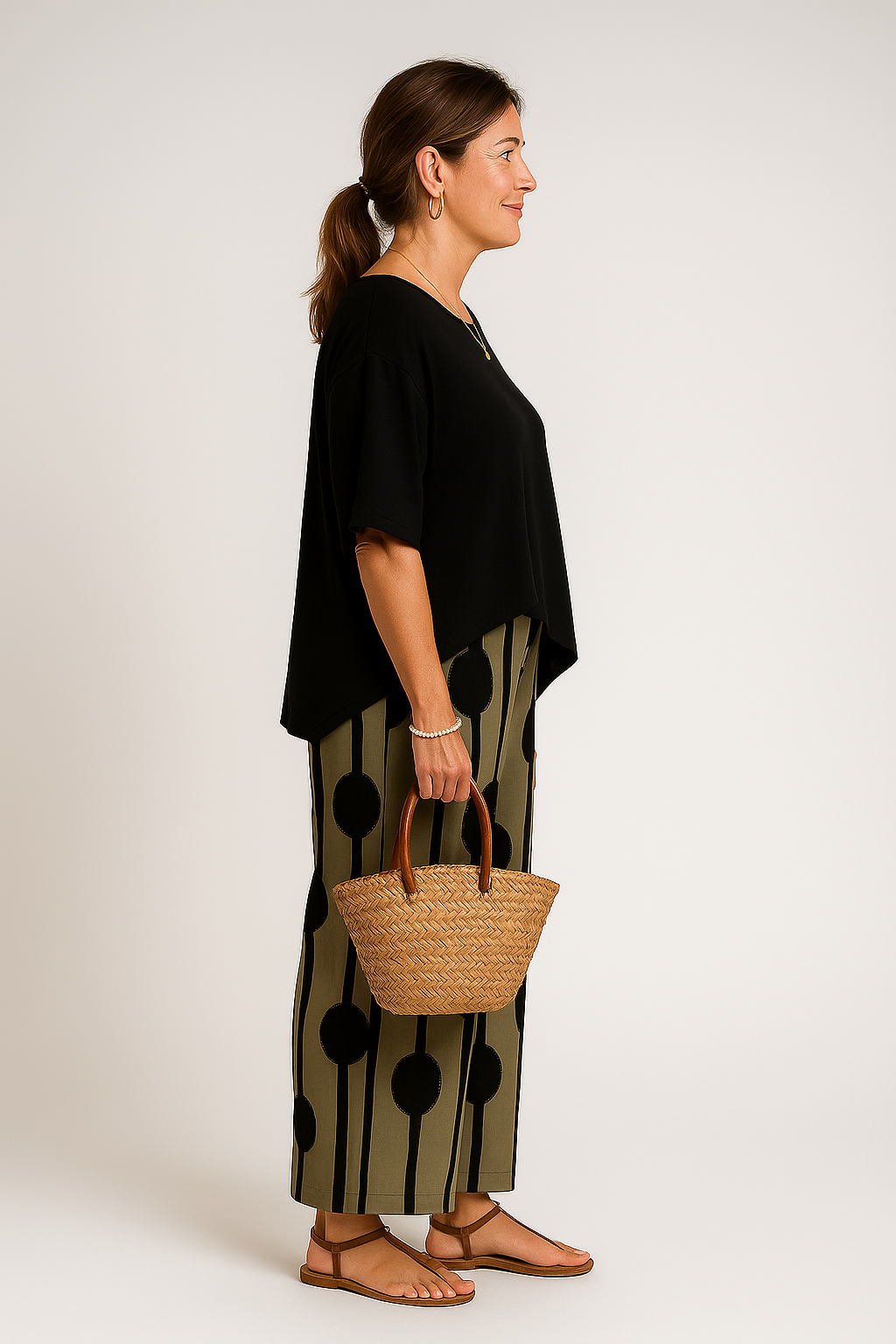 The Milavie Set is your new favourite for warm-weather days when you want to feel put-together without trying too hard. The flowy top and striking wide-leg trousers are made for movement and comfort, while the abstract print adds just the right amount of flair. From beach cafés to summer markets – this is your go-to statement look.