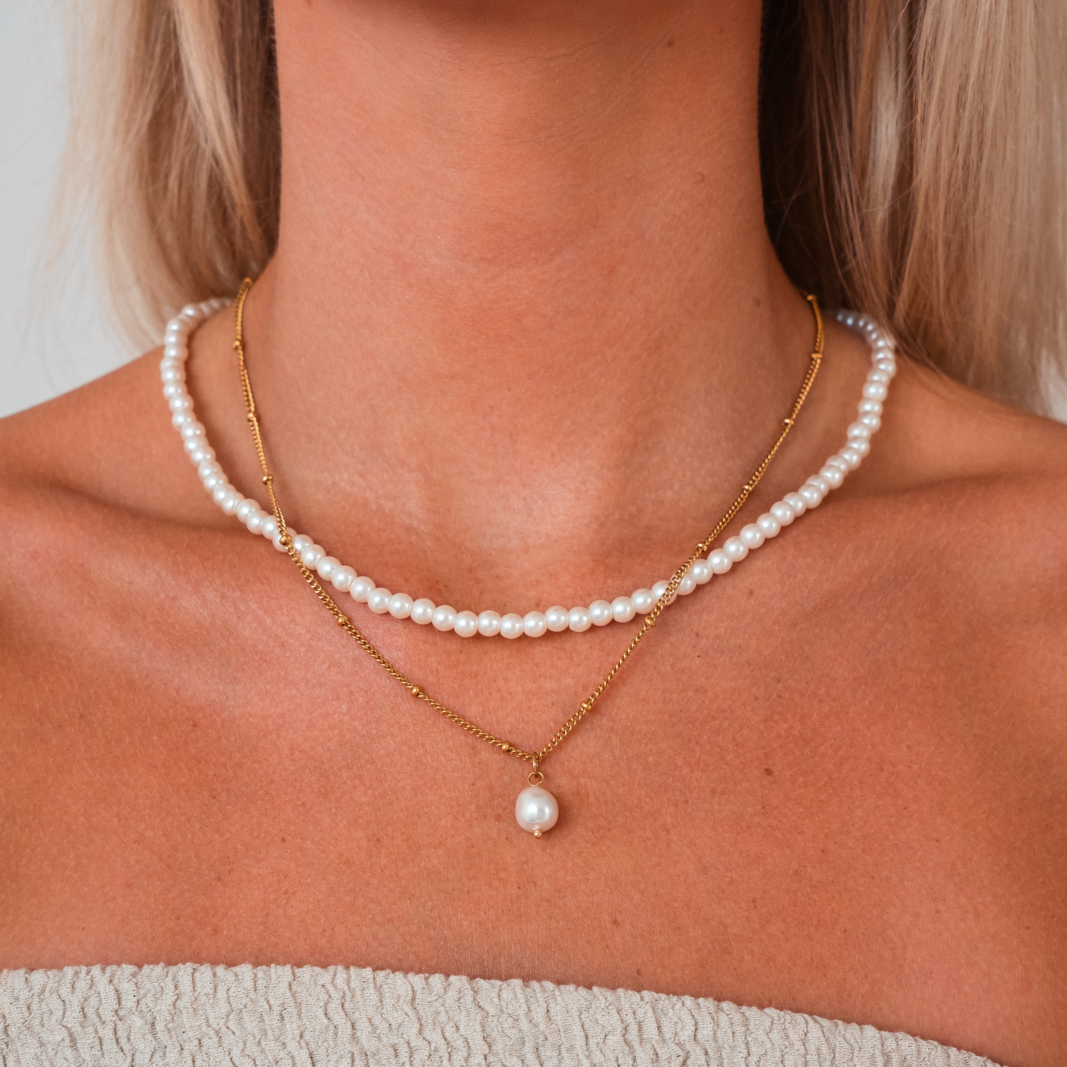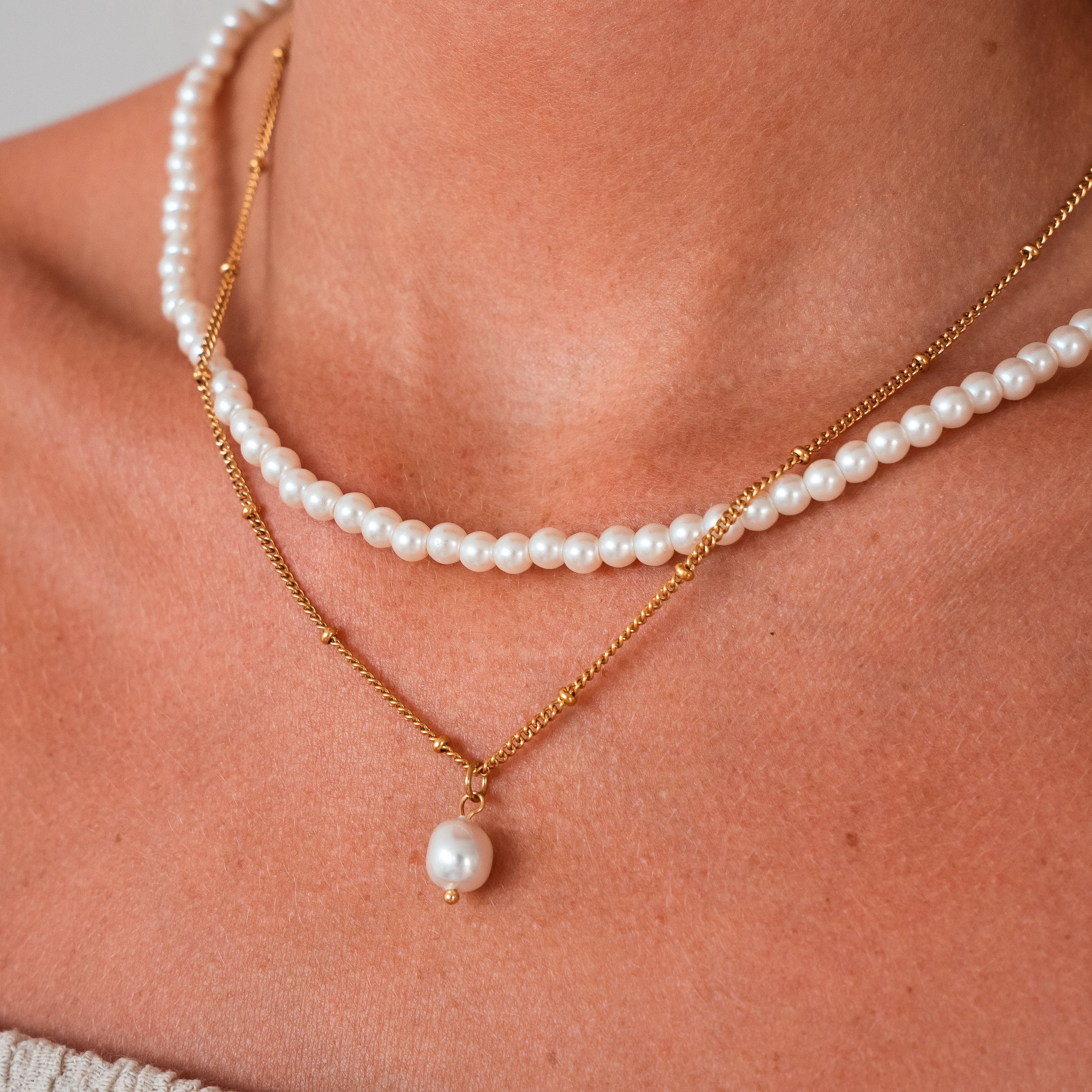 Our Everyday Bundle combines two of our bestsellers, the Calvi Necklace and the One Pearl Necklace!