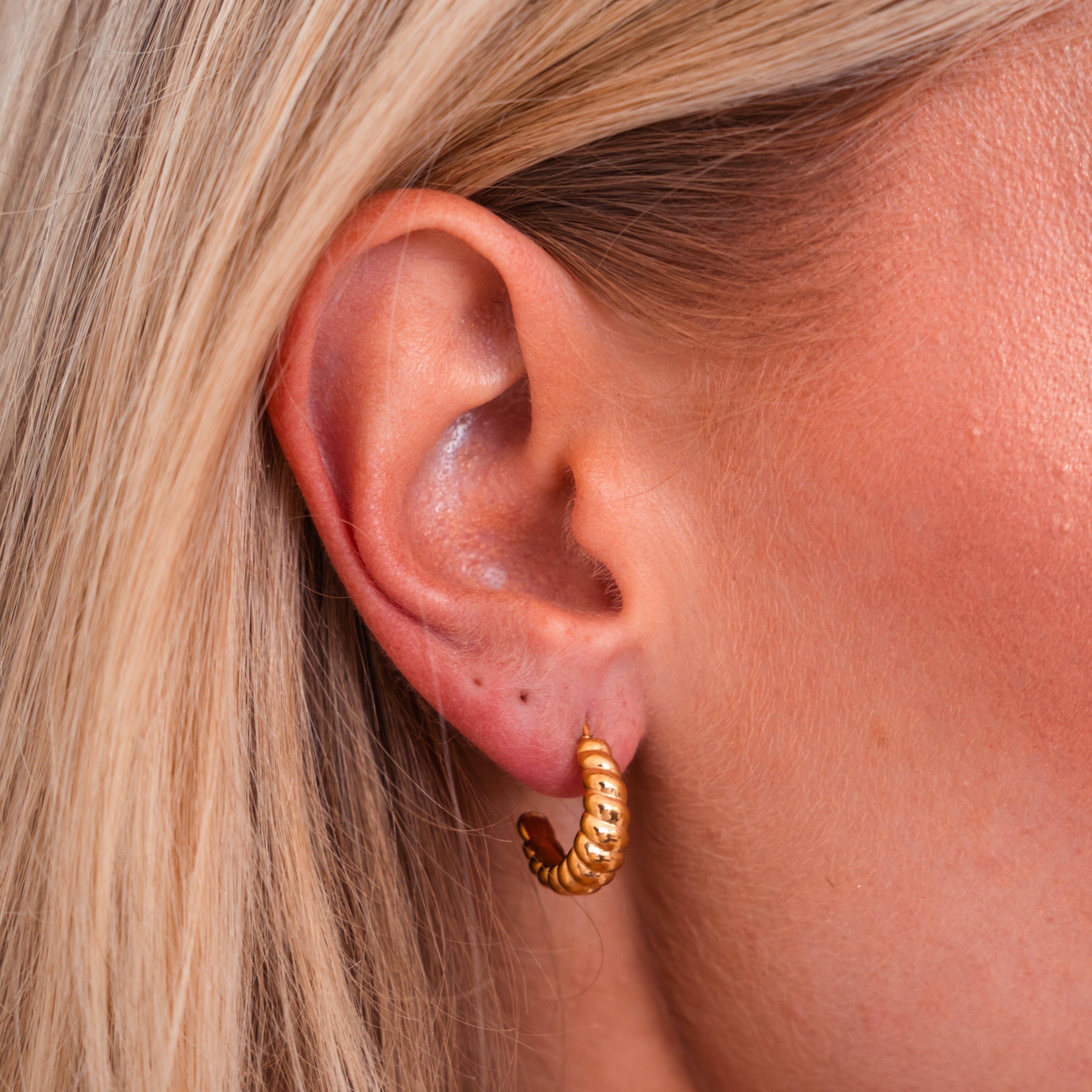 Indulge your inner French girl with our Croissant earrings! These waterproof and lightweight earrings are the perfect twisted ring to elevate your look.